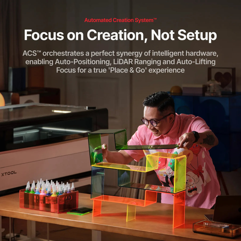| Supported Materials | Laser Cuttable: Wood, Acrylic, Fabric, Leather Laser Engravable: Metal, Glass, Bamboo, Ceramic & more |