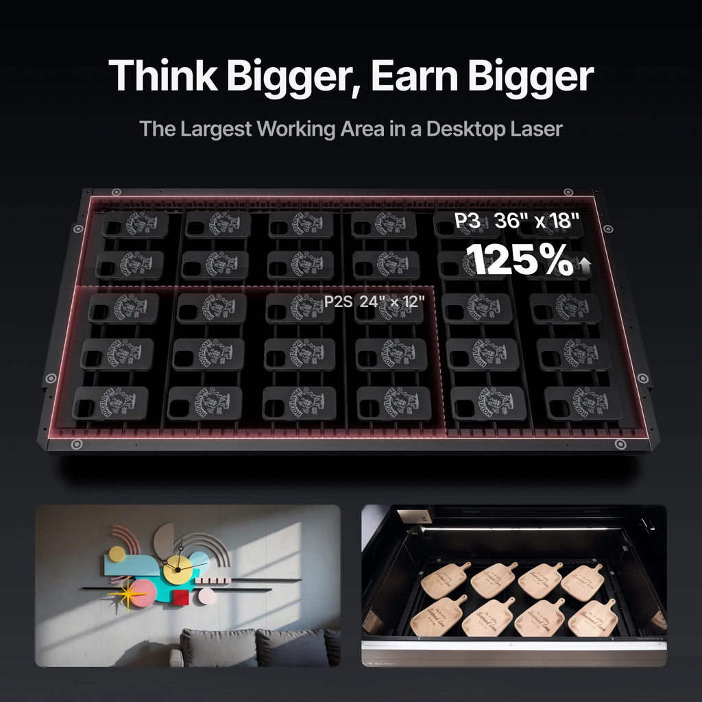 - 36" × 18" Working Area: Our largest workspace yet—2.3x larger than the P2S.